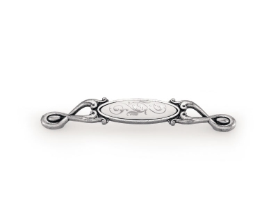15090128PO26W16 - Mâner italian de culoare argintiu vechi și ceramică albă cu model.