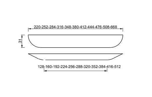 1205 maner profil in 5 culori: crom, crom mat, alb, inox, negru mat. Disponibil in marimi: - 160mm; - 224 mm; - 288 mm; - 416 mm.