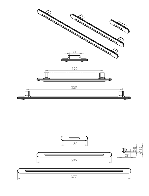 2330 mâner mobila 2330 in doua culori alb mat+auriu si negru mat+auriu. Disponibil in 3 marimi: - 32 mm; - 192 mm; - 320 mm.