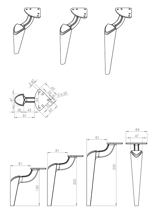 2480 Belek Picioare de mobilă în negru matt (soft black). Prezentat in trei dimensiuni - 150mm, 200mm, 250mm.