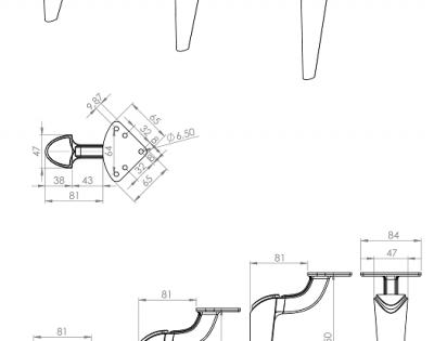 LARA 2580 picioare de mobilier de culoare aurie în trei dimensiuni: - 150 mm; - 20 mm; - 250 mm.