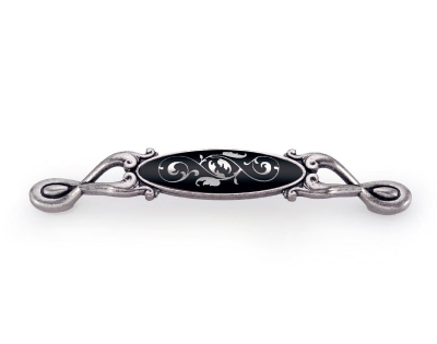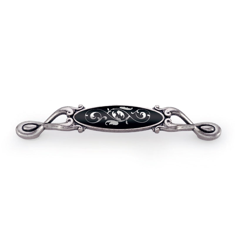 15090128PO26B16 - Итальянская ручка в цвете старое серебро и керамикой черного цвета с узором.