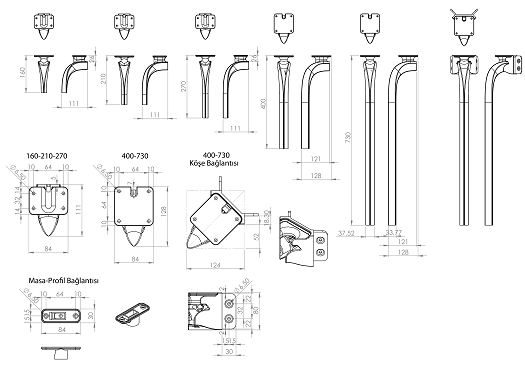 - 160 мм; - 210 мм; - 270 мм; - 400 мм; - 700 мм.