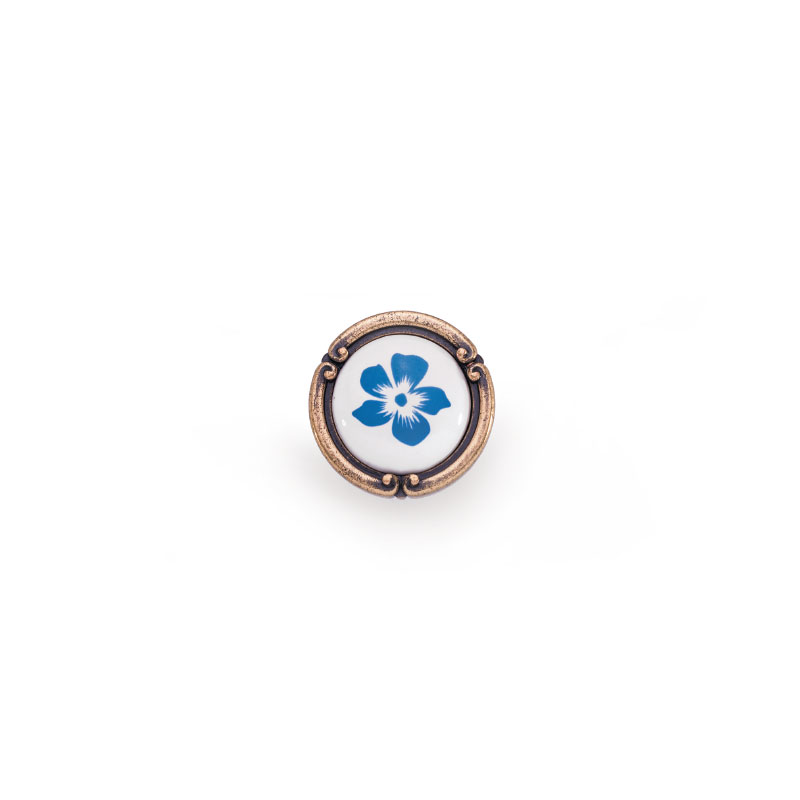 1509035PO2412 - Итальянская ручка кнопка в цвете античная бронза и керамика белого цвета с узором.