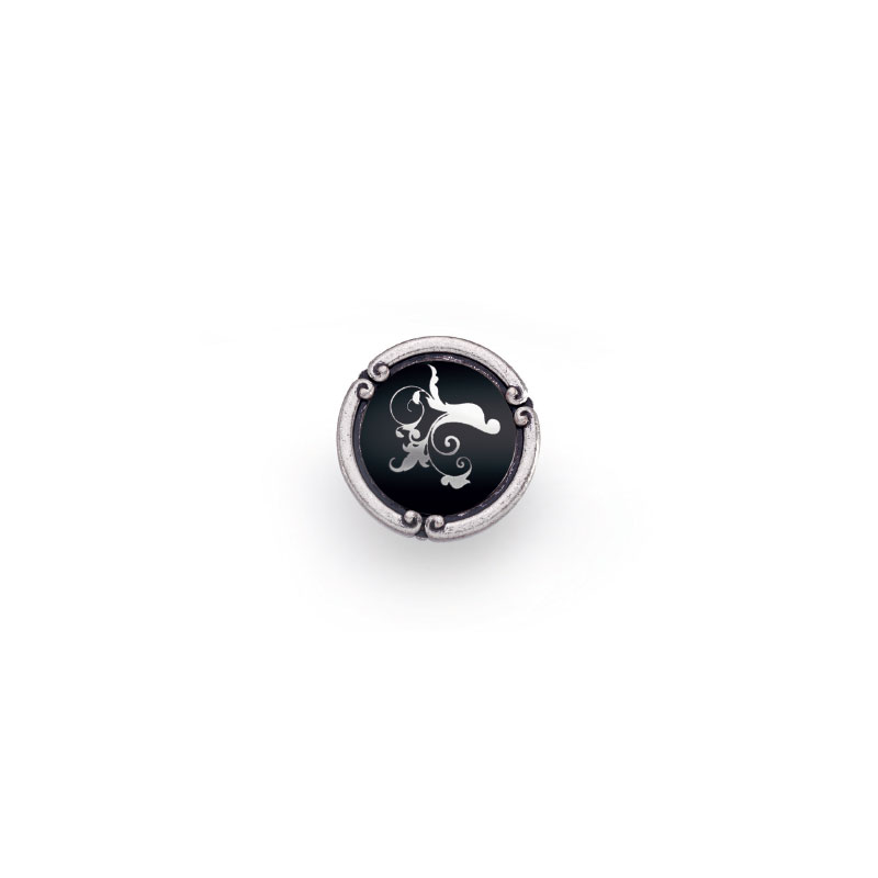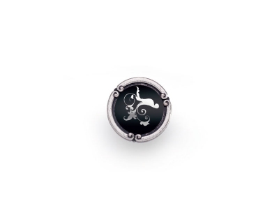 1509035PO26B16 - Итальянская ручка кнопка в цвете старое серебро и керамикой черного цвета с узором.