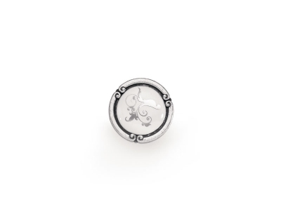 1509035PO26W16 - Итальянская ручка кнопка в цвете старое серебро и керамикой белого цвета с узором.